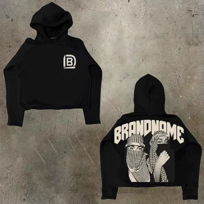 Hip Hop Gothic Hoodie American Hip Hop Y2K Harajuku Cartoon Print Loose Plus Size Sweater Hoodie Men and Women Top